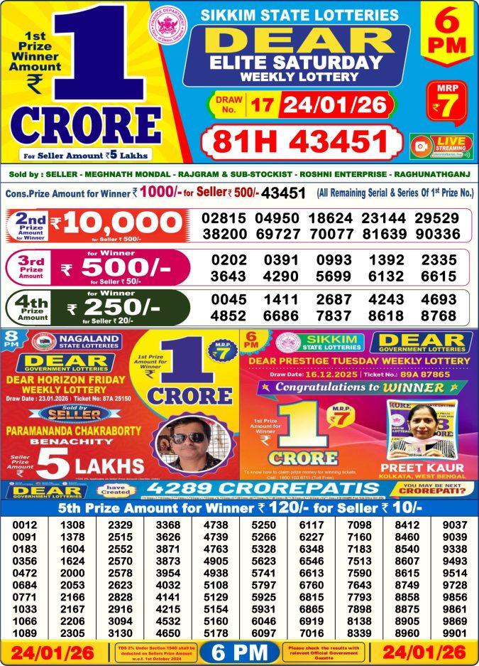 Dear Lottery Nagaland Lottery Sambad 1 PM 6 PM 8 PM