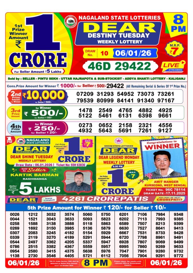 Dear Lottery Nagaland Lottery Sambad 1 PM 6 PM 8 PM