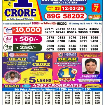 Dear comet Tuesday weekly lottery 11.3.25 6pm result March 11, 2025 Leave a Comment on Dear comet Tuesday weekly lottery 11.3.25 6pm result Get Instant Results on Whatsapp Related Articles 0 518 Dear Blitzen Monday Weekly Lottery 18.08.25 6pm Result 0 594 Dear cupid wednesday weekly lottery 02.07.25 6pm result 0 95 Dear Supreme Thursday Weekly Lottery 12.03.26 6pm Result 0 745 Dear vixen sunday weekly lottery 2.3.25 6pm result