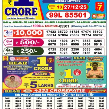 Dear Comet Tuesday Weekly Lottery 30.09.25 6pm Result September 30, 2025 Leave a Comment on Dear Comet Tuesday Weekly Lottery 30.09.25 6pm Result Get Instant Results on Whatsapp Related Articles 0 9 Dear Regal Wednesday Weekly Lottery 31.12.25 6pm Result 0 514 Dear comet Tuesday weekly lottery 18.3.25 6pm result 0 125 Dear Cupid Wednesday Weekly Lottery 01.10.25 6pm Result 0 12 Dear Elite Saturday Weekly Lottery 27.12.25 6pm Result