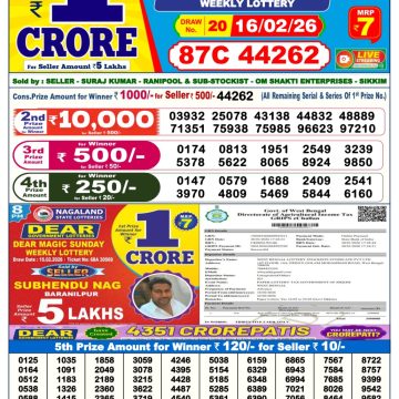 Dear Cupid Wednesday Weekly Lottery 01.10.25 6pm Result October 1, 2025 Leave a Comment on Dear Cupid Wednesday Weekly Lottery 01.10.25 6pm Result Get Instant Results on Whatsapp Related Articles 0 109 Dear Prestige Tuesday Weekly Lottery 06.01.26 6pm Result 0 102 Dear Elite Saturday Weekly Lottery 20.12.25 6pm Result 0 153 Dear Regal Wednesday Weekly Lottery 21.01.26 6pm Result 0 235 Dear Prestige Tuesday Weekly Lottery 07.10.25 6pm Result