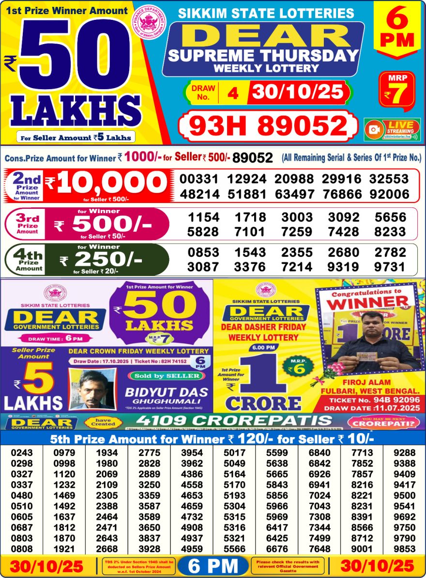 Dear Dancer Thursday Weekly Lottery 30.10.25 6pm Result October 30, 2025 Leave a Comment on Dear Dancer Thursday Weekly Lottery 30.10.25 6pm Result Get Instant Results on Whatsapp Related Articles 0 139 Dear Cupid Wednesday Weekly Lottery 24.09.25 6pm Result 0 20 Dear Legend Monday Weekly Lottery 20.10.25 6pm Result 0 613 Dear donner saturday weekly lottery 1.2.25 6pm result 0 202 Dear Dancer Thursday Weekly Lottery 04.09.25 6pm Result