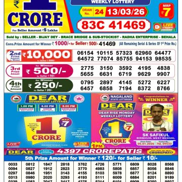 Dear Dasher Friday weekly lottery 06.06.25 6pm result June 6, 2025 Leave a Comment on Dear Dasher Friday weekly lottery 06.06.25 6pm result Get Instant Results on Whatsapp Related Articles 0 734 Dear cupid wednesday weekly lottery 8.1.25 6pm result 0 896 Dear Dasher Friday weekly lottery 31.1.25 6pm result 1 725 Dear Dasher Friday weekly lottery 28.2.25 6pm result 0 466 Dear Crown Friday Weekly Lottery 27.02.26 6pm Result