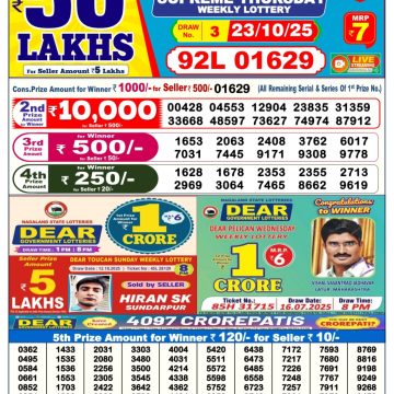 Dear donner saturday weekly lottery 29.3.25 6pm result March 29, 2025 Leave a Comment on Dear donner saturday weekly lottery 29.3.25 6pm result Get Instant Results on Whatsapp Related Articles 0 10 Dear Supreme Thursday Weekly Lottery 23.10.25 6pm Result 0 208 Dear Comet Tuesday Weekly Lottery 02.09.25 6pm Result 0 212 Dear Cupid Wednesday Weekly Lottery 20.08.25 6pm Result 0 337 Dear vixen sunday weekly lottery 20.07.25 6pm result
