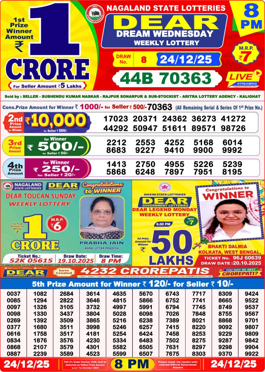 Dear Dream Wednesday Weekly Lottery 24.12.25 8pm Result December 24, 2025 Leave a Comment on Dear Dream Wednesday Weekly Lottery 24.12.25 8pm Result Get Instant Results on Whatsapp Related Articles 0 761 Dear gosse Tuesday weekly lottery 7.1.25 8pm result 0 643 Dear goose Tuesday weekly lottery 27.05.25 8pm result 0 627 Dear sandpiper Thursday weekly lottery 24.4.25 8pm result 0 476 Dear seagull Friday weekly lottery 27.06.25 8pm result