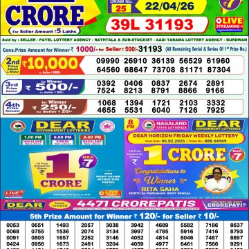 Dear dwarka monday weekly lottery 14.07.25 1pm result July 14, 2025 Leave a Comment on Dear dwarka monday weekly lottery 14.07.25 1pm result Get Instant Results on Whatsapp Related Articles 0 54 Dear Spark Wednesday Weekly Lottery 22.04.26 1pm Result 0 769 Dear yamuna sunday weekly lottery 18.5.25 1pm result 0 699 Dear dwarka monday weekly lottery 19.5.25 1pm result 0 479 Dear Mahanadi Thursday Weekly Lottery 31.07.25 1pm Result