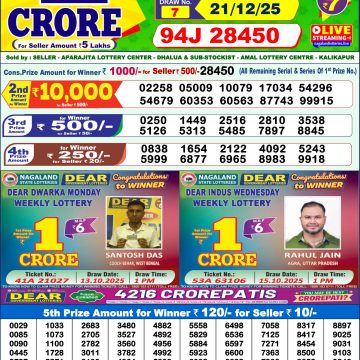 Dear dwarka monday weekly lottery 28.07.25 1pm result July 28, 2025 Leave a Comment on Dear dwarka monday weekly lottery 28.07.25 1pm result Get Instant Results on Whatsapp Related Articles 0 521 Dear yamuna sunday weekly lottery 01.06.25 1pm result 0 645 Dear godavari Tuesday weekly lottery 4.2.25 1pm result 0 88 Dear Star Thursday Weekly Lottery 01.01.26 1pm Result 0 61 Dear Wish Sunday Weekly Lottery 21.12.25 1pm Result