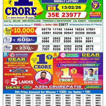Dear Godavari Tuesday Weekly Lottery 19.08.25 1pm Result August 19, 2025 Leave a Comment on Dear Godavari Tuesday Weekly Lottery 19.08.25 1pm Result Get Instant Results on Whatsapp Related Articles 0 555 Dear narmada saturday weekly lottery 21.06.25 1pm result 0 649 Dear godavari Tuesday weekly lottery 27.05.25 1pm result 0 197 Dear Mahanadi Thursday Weekly Lottery 30.10.25 1pm Result 0 409 Dear Victory Friday Weekly Lottery 13.02.26 1pm Result
