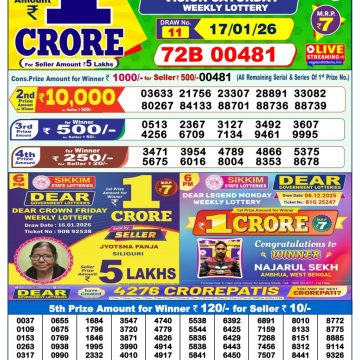 Dear Godavari Tuesday Weekly Lottery 28.10.25 1pm Result October 28, 2025 Leave a Comment on Dear Godavari Tuesday Weekly Lottery 28.10.25 1pm Result Get Instant Results on Whatsapp Related Articles 0 508 Dear yamuna sunday weekly lottery 25.05.25 1pm result 0 8 Dear Shine Tuesday Weekly Lottery 27.01.26 1pm Result 0 626 Dear godavari Tuesday weekly lottery 4.3.25 1pm result 0 788 Dear godavari Tuesday weekly lottery 21.1.25 1pm result