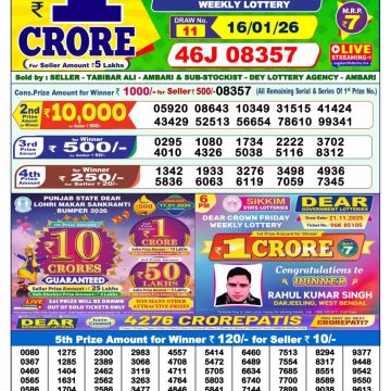 Dear Indus Wednesday Weekly Lottery 1.01.25 1pm Result January 1, 2025 Leave a Comment on Dear Indus Wednesday Weekly Lottery 1.01.25 1pm Result Get Instant Results on Whatsapp Related Articles 0 50 Dear Wish Sunday Weekly Lottery 14.12.25 1pm Result 0 23 Dear Star Thursday Weekly Lottery 08.01.26 1pm Result 0 586 Dear meghna Friday weekly lottery 7.3.25 1pm result 0 110 Dear Yamuna Sunday Weekly Lottery 12.10.25 1pm Result