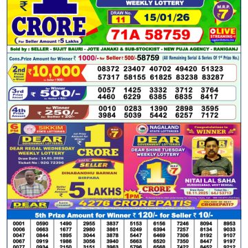 Dear Indus Wednesday Weekly Lottery 22.10.25 1pm Result October 22, 2025 Leave a Comment on Dear Indus Wednesday Weekly Lottery 22.10.25 1pm Result Get Instant Results on Whatsapp Related Articles 0 16 Dear Star Thursday Weekly Lottery 15.01.26 1pm Result 0 733 Dear yamuna sunday weekly lottery 12.1.25 1pm result 0 60 Dear Victory Friday Weekly Lottery 28.11.25 1pm Result 0 96 Dear Victory Friday Weekly Lottery 07.11.25 1pm Result