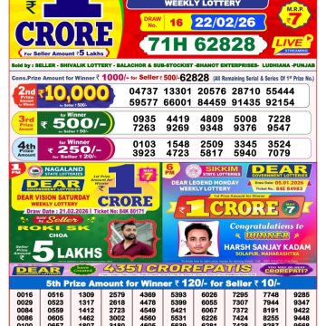 Dear Lucky Saturday Weekly Lottery 10.01.26 8pm Result January 10, 2026 Leave a Comment on Dear Lucky Saturday Weekly Lottery 10.01.26 8pm Result Get Instant Results on Whatsapp Related Articles 0 592 Dear pelican wednesday weekly lottery 25.06.25 8pm result 0 736 Dear seagull Friday weekly lottery 3.1.25 8pm result 0 548 Dear pelican wednesday weekly lottery 23.07.25 8pm result 0 508 Dear Finch Monday Weekly Lottery 11.08.25 8pm Result