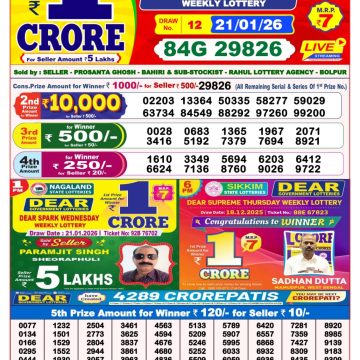Dear Magic Sunday Weekly Lottery 25.01.26 8pm Result January 25, 2026 Leave a Comment on Dear Magic Sunday Weekly Lottery 25.01.26 8pm Result Get Instant Results on Whatsapp Related Articles 0 453 Dear Stork Saturday Weekly Lottery 02.08.25 8pm Result 0 96 Dear Lucky Saturday Weekly Lottery 15.11.25 8pm Result 0 49 Dear Clover Monday Weekly Lottery 22.12.25 8pm Result 0 66 Dear Fame Thursday Weekly Lottery 27.11.25 8pm Result