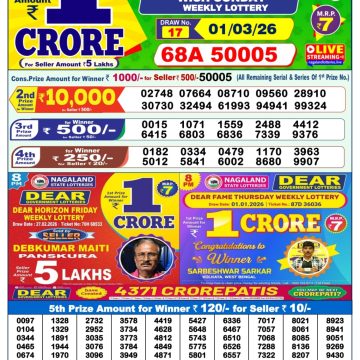Dear mahanadi Thursday weekly lottery 27.3.25 1pm result March 27, 2025 Leave a Comment on Dear mahanadi Thursday weekly lottery 27.3.25 1pm result Get Instant Results on Whatsapp Related Articles 0 689 Dear dwarka monday weekly lottery 24.2.25 1pm result 0 667 Dear godavari Tuesday weekly lottery 27.05.25 1pm result 0 152 Dear Star Thursday Weekly Lottery 27.11.25 1pm Result 0 715 Dear indus wednesday weekly lottery 5.3.25 1pm result