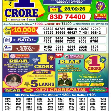 Dear mahanadi Thursday weekly lottery 3.4.25 1pm result April 3, 2025 Leave a Comment on Dear mahanadi Thursday weekly lottery 3.4.25 1pm result Get Instant Results on Whatsapp Related Articles 0 623 Dear meghna Friday weekly lottery 21.3.25 1pm result 0 490 Dear meghna Friday weekly lottery 04.07.25 1pm result 0 150 Dear Rise Monday Weekly Lottery 17.11.25 1pm Result 0 857 Dear meghna Friday weekly lottery 10.1.25 1pm result