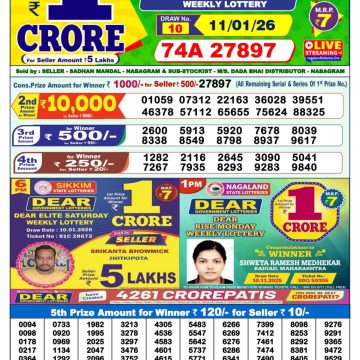 Dear meghna Friday weekly lottery 06.06.25 1pm result June 6, 2025 Leave a Comment on Dear meghna Friday weekly lottery 06.06.25 1pm result Get Instant Results on Whatsapp Related Articles 0 282 Dear Godavari Tuesday Weekly Lottery 02.09.25 1pm Result 0 41 Dear Wish Sunday Weekly Lottery 18.01.26 1pm Result 0 123 Dear Mahanadi Thursday Weekly Lottery 23.10.25 1pm Result 2 495 Dear yamuna sunday weekly lottery 20.4.25 1pm result