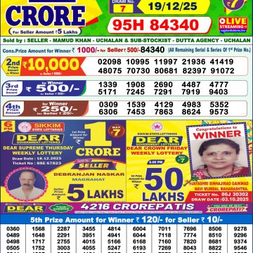 Dear narmada saturday weekly lottery 21.06.25 1pm result June 21, 2025 Leave a Comment on Dear narmada saturday weekly lottery 21.06.25 1pm result Get Instant Results on Whatsapp Related Articles 0 794 Dear mahanadi Thursday weekly lottery 30.1.25 1pm result 0 15 Dear Victory Friday Weekly Lottery 19.12.25 1pm Result 0 67 Dear Godavari Tuesday Weekly Lottery 28.10.25 1pm Result 0 339 Dear Narmada Saturday Weekly Lottery 02.08.25 1pm Result