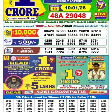 Dear narmada saturday weekly lottery 26.4.25 1pm result April 26, 2025 Leave a Comment on Dear narmada saturday weekly lottery 26.4.25 1pm result Get Instant Results on Whatsapp Related Articles 0 823 Dear indus wednesday weekly lottery 26.2.25 1pm result 0 615 Dear yamuna sunday weekly lottery 27.4.25 1pm result 0 86 Dear Shine Tuesday Weekly Lottery 11.11.25 1pm Result 0 37 Dear Vision Saturday Weekly Lottery 10.01.26 1pm Result