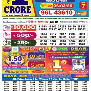 Dear Prestige Tuesday Weekly Lottery 10.03.26 6pm Result March 10, 2026 Leave a Comment on Dear Prestige Tuesday Weekly Lottery 10.03.26 6pm Result Get Instant Results on Whatsapp Related Articles 0 390 Dear Donner Saturday Weekly Lottery 06.09.25 6pm Result 0 166 Dear Supreme Thursday Weekly Lottery 13.11.25 6pm Result 1 827 Dear donner saturday weekly lottery 25.1.25 6pm result 0 405 Dear Regal Wednesday Weekly Lottery 18.02.26 6pm Result