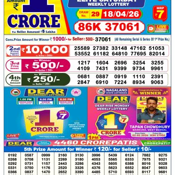 Dear Prestige Tuesday Weekly Lottery 20.01.26 6pm Result January 20, 2026 Leave a Comment on Dear Prestige Tuesday Weekly Lottery 20.01.26 6pm Result Get Instant Results on Whatsapp Related Articles 0 348 Dear Legend Monday Weekly Lottery 03.11.25 6pm Result 0 739 Dear donner saturday weekly lottery 5.4.25 6pm result 0 860 Dear vixen sunday weekly lottery 19.1.25 6pm result 0 500 Dear Blitzen Monday Weekly Lottery 25.08.25 6pm Result