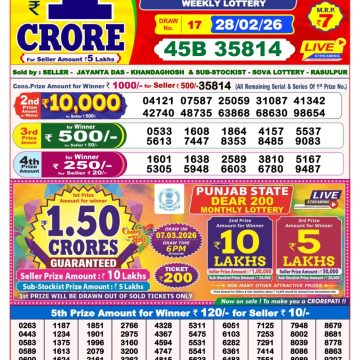 Dear Sandpiper Thursday Weekly Lottery 23.10.25 8pm Result October 23, 2025 Leave a Comment on Dear Sandpiper Thursday Weekly Lottery 23.10.25 8pm Result Get Instant Results on Whatsapp Related Articles 0 504 Dear Goose Tuesday Weekly Lottery 09.09.25 8pm Result 0 168 Dear Magic Sunday Weekly Lottery 07.12.25 8pm Result 0 581 Dear Toucan Sunday Weekly Lottery 03.08.25 8pm Result 0 684 Dear Lucky Saturday Weekly Lottery 28.02.26 8pm Result