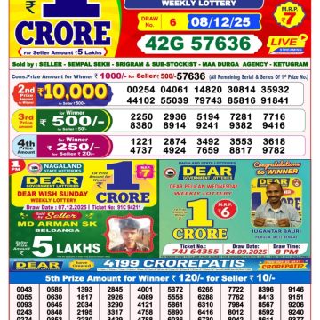 Dear seagull Friday weekly lottery 17.1.25 8pm result January 17, 2025 Leave a Comment on Dear seagull Friday weekly lottery 17.1.25 8pm result Get Instant Results on Whatsapp Related Articles 0 687 Dear goose Tuesday weekly lottery 6.5.25 8pm result 0 556 Dear goose Tuesday weekly lottery 03.06.25 8pm result 0 534 Dear toucan sunday weekly lottery 01.06.25 8pm result 0 100 Dear Seagull Friday Weekly Lottery 10.10.25 8pm Result