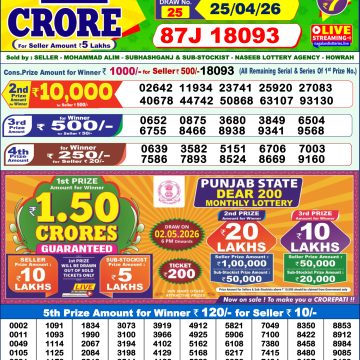 Dear Shine Tuesday Weekly Lottery 28.04.26 1pm Result April 28, 2026 Leave a Comment on Dear Shine Tuesday Weekly Lottery 28.04.26 1pm Result Get Instant Results on Whatsapp Related Articles 0 256 Dear Vision Saturday Weekly Lottery 27.12.25 1pm Result 0 52 Dear Vision Saturday Weekly Lottery 25.04.26 1pm Result 0 749 Dear dwarka monday weekly lottery 24.2.25 1pm result 0 609 Dear Rise Monday Weekly Lottery 09.02.26 1pm Result