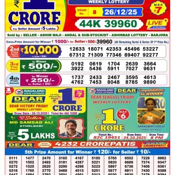 Dear Horizon Friday Weekly Lottery 26.12.25 8pm Result