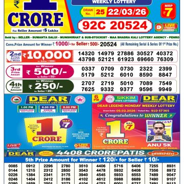 Dear Supreme Thursday Weekly Lottery 26.03.26 6pm Result March 26, 2026 Leave a Comment on Dear Supreme Thursday Weekly Lottery 26.03.26 6pm Result Get Instant Results on Whatsapp Related Articles 0 702 Dear comet Tuesday weekly lottery 20.5.25 6pm result 0 195 Dear Prestige Tuesday Weekly Lottery 11.11.25 6pm Result 0 217 Dear Supreme Thursday Weekly Lottery 06.11.25 6pm Result 0 189 Dear Legend Monday Weekly Lottery 05.01.26 6pm Result