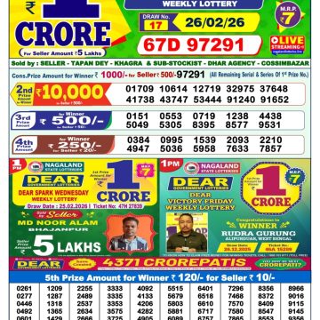Dear Victory Friday Weekly Lottery 28.11.25 1pm Result November 28, 2025 Leave a Comment on Dear Victory Friday Weekly Lottery 28.11.25 1pm Result Get Instant Results on Whatsapp Related Articles 0 635 Dear narmada saturday weekly lottery 12.4.25 1pm result 0 194 Dear Narmada Saturday Weekly Lottery 27.09.25 1pm Result 0 143 Dear Star Thursday Weekly Lottery 13.11.25 1pm Result 0 364 Dear Narmada Saturday Weekly Lottery 30.08.25 1pm Result