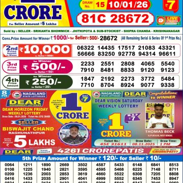 Dear Empire Sunday Weekly Lottery 12.10.25 6pm Result October 12, 2025 Leave a Comment on Dear Empire Sunday Weekly Lottery 12.10.25 6pm Result Get Instant Results on Whatsapp Related Articles 0 6 Dear Elite Saturday Weekly Lottery 10.01.26 6pm Result 0 723 Dear comet Tuesday weekly lottery 25.2.25 6pm result 0 893 Dear Dasher Friday weekly lottery 3.1.25 6pm result 0 617 Dear blitzen monday weekly lottery 10.2.25 6pm result