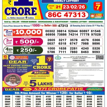 Dear Vixen Sunday Weekly Lottery 24.08.25 6pm Result August 24, 2025 Leave a Comment on Dear Vixen Sunday Weekly Lottery 24.08.25 6pm Result Get Instant Results on Whatsapp Related Articles 0 683 Dear blitzen monday weekly lottery 21.4.25 6pm result 0 396 Dear Dancer Thursday Weekly Lottery 21.08.25 6pm Result 0 521 Dear blitzen monday weekly lottery 09.06.25 6pm result 0 803 Dear blitzen monday weekly lottery 3.3.25 6pm result
