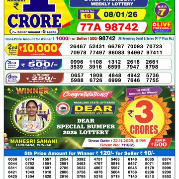Dear Yamuna Sunday Weekly Lottery 03.08.25 1pm Result August 3, 2025 Leave a Comment on Dear Yamuna Sunday Weekly Lottery 03.08.25 1pm Result Get Instant Results on Whatsapp Related Articles 0 10 Dear Star Thursday Weekly Lottery 08.01.26 1pm Result 0 236 Dear Narmada Saturday Weekly Lottery 06.09.25 1pm Result 0 34 Dear Vision Saturday Weekly Lottery 20.12.25 1pm Result 0 492 Dear meghna Friday weekly lottery 23.05.25 1pm result