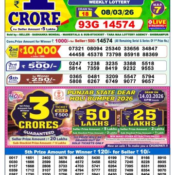 Dear Yamuna Sunday Weekly Lottery 07.09.25 1pm Result September 7, 2025 Leave a Comment on Dear Yamuna Sunday Weekly Lottery 07.09.25 1pm Result Get Instant Results on Whatsapp Related Articles 0 37 Dear Wish Sunday Weekly Lottery 08.03.26 1pm Result 0 477 Dear indus wednesday weekly lottery 02.07.25 1pm result 0 451 Dear mahanadi Thursday weekly lottery 12.06.25 1pm result 0 621 Dear yamuna sunday weekly lottery 13.4.25 1pm result