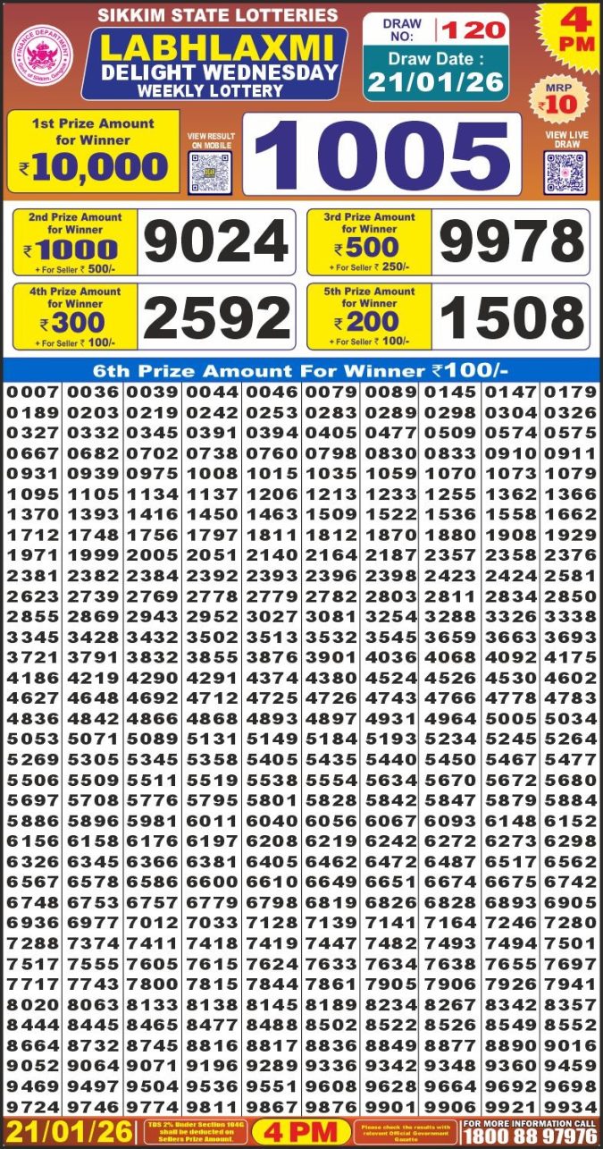 Labh Laxmi Delight Wednesday Weekly Lottery 21.01.26 4pm Result